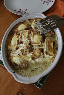 4. Eine Gratinform fetten, eine Schicht Kartoffeln auslegen, eine Schicht (Räucher-) Lachs, Zwiebeln, Crème Fraîche, Kräuter und letzendlich eine Schicht Reblochon. Diesen Vorgang wiederholen, bis alle Zutaten aufgebraucht sind. Mit einer Käseschicht enden.
